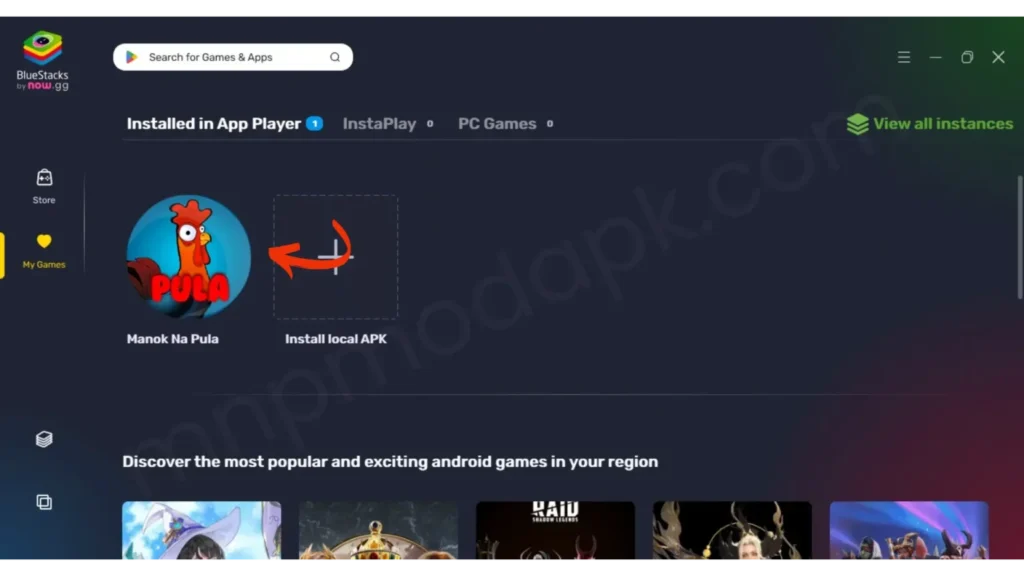 How to Install Manok Na Pula for PC Mod APK with BlueStacks?